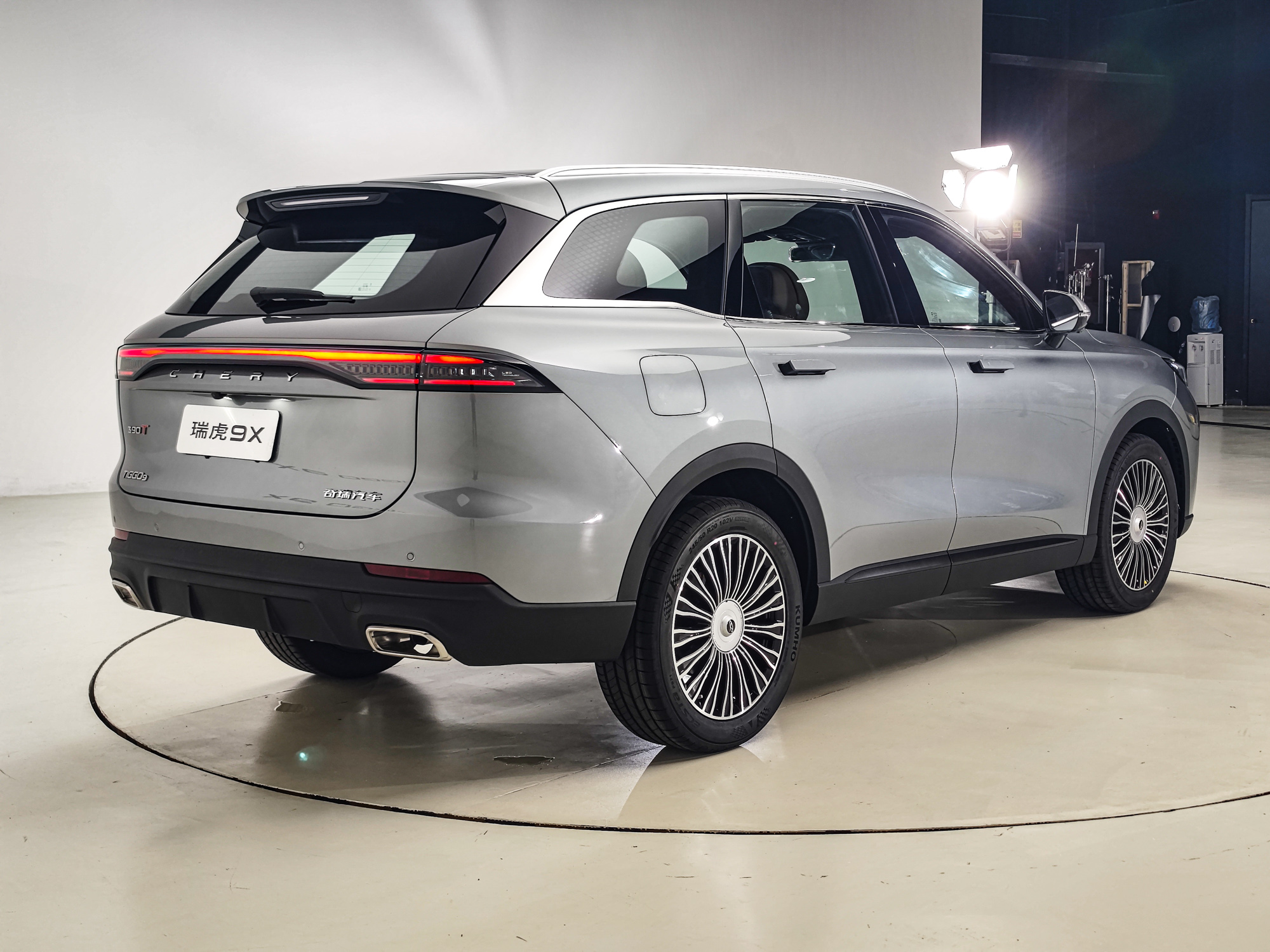 尾门左侧标注 “390T” 标识凸显动力性能,延续了2026款瑞虎9燃油版的连续尾灯设计与英文标识下移布局,比现款瑞虎9的尾部更简洁动感。